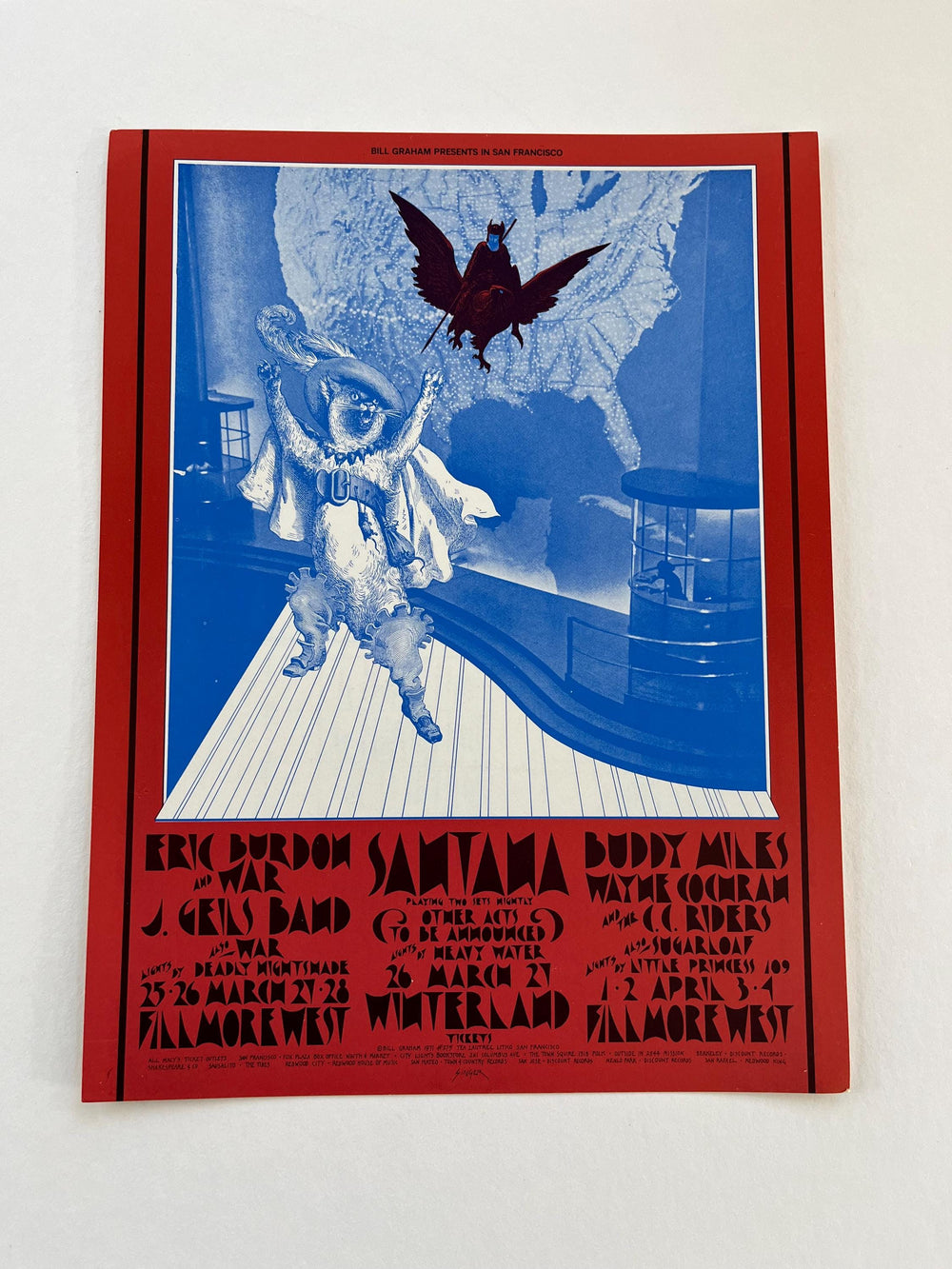 David Singer Santana J Geils Band Winterland/Fillmore 1971 BG-275 Original Postcard